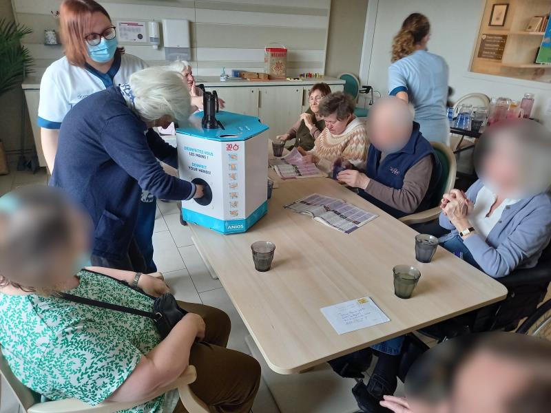 Une activité « hygiène des mains » est proposée aux résidents afin de rappeler l’importance de ce geste au quotidien. À travers des échanges, des démonstrations ludiques et la pratique du lavage des mains ou de la friction hydroalcoolique, les résidents participent activement. Ce moment convivial favorise la prévention des infections et le maintien de l’autonomie.